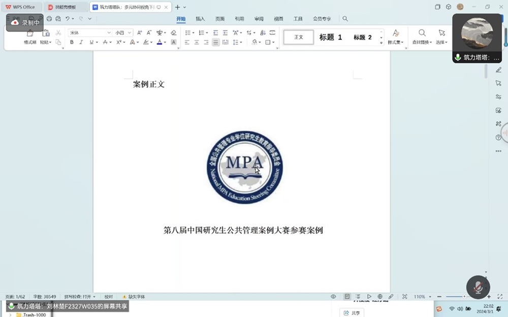第八届中国研究生公共管理案例大赛线上打磨会顺利举行。