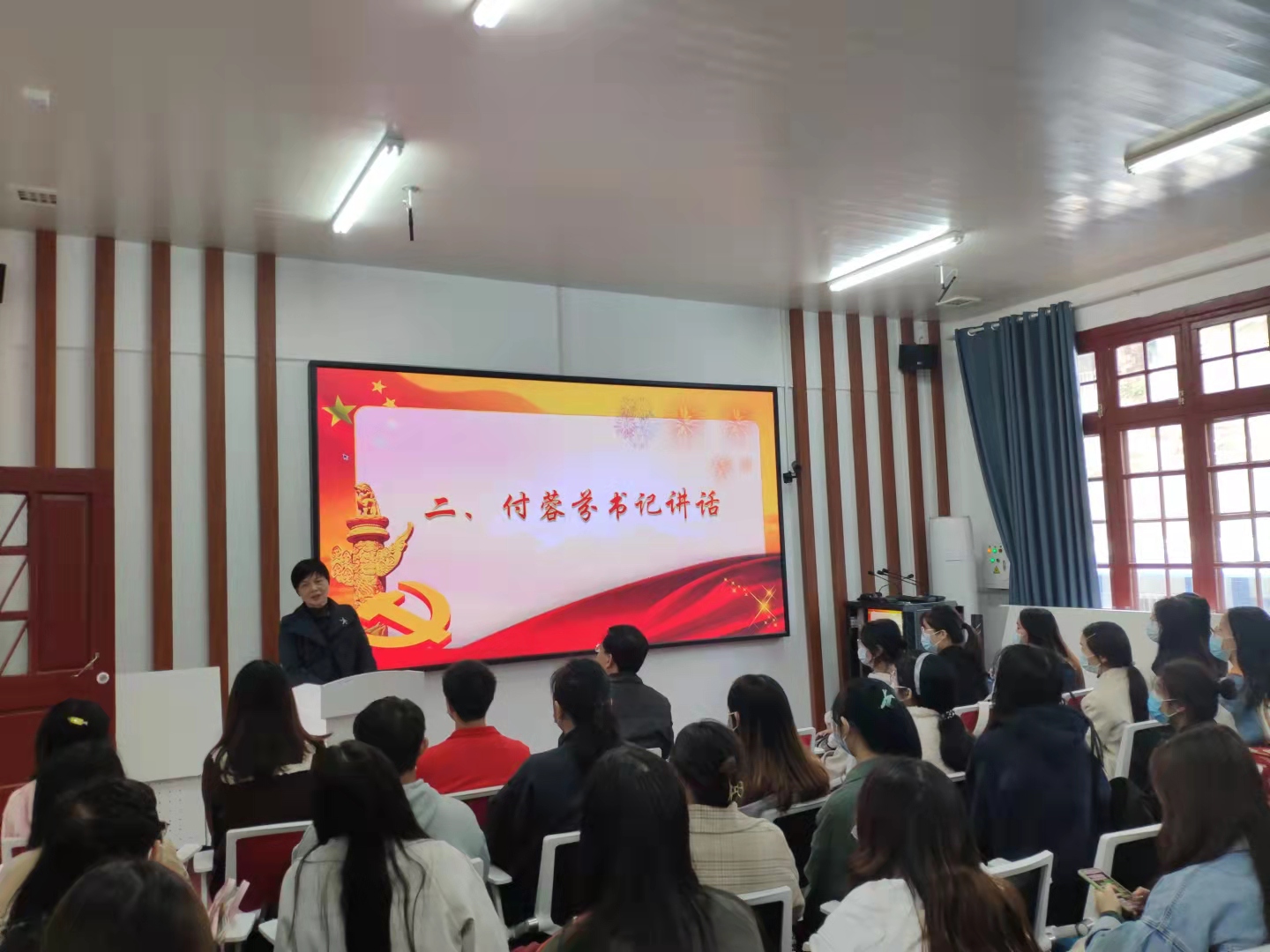 党委书记付蓉芬老师对参加本次培训班的学员做了开班动员,付书记指出在中国共产党成立100周年之际,开设此次发展对象培训班,专题学习党史和党的各项基本理论知识,意义重大,希望同学们珍惜机会,不断提高政治理论水平,做到政治上合格、过硬。付书记还要求学员们在培训学习中进一步明确共产党人的初心与使命,思考“为什么说中国共产党的诞生改变了中华民族发展方向”“为什么说中国共产党的诞生改变了中华民族前途命运”“为什么说中国共产党的诞生改变了世界发展趋势和格局”,并通过系统学习“四史”,从中国取得的伟大成就出发,思考“中国共产党为什么能”“中国特色社会主义为什么好”等问题。