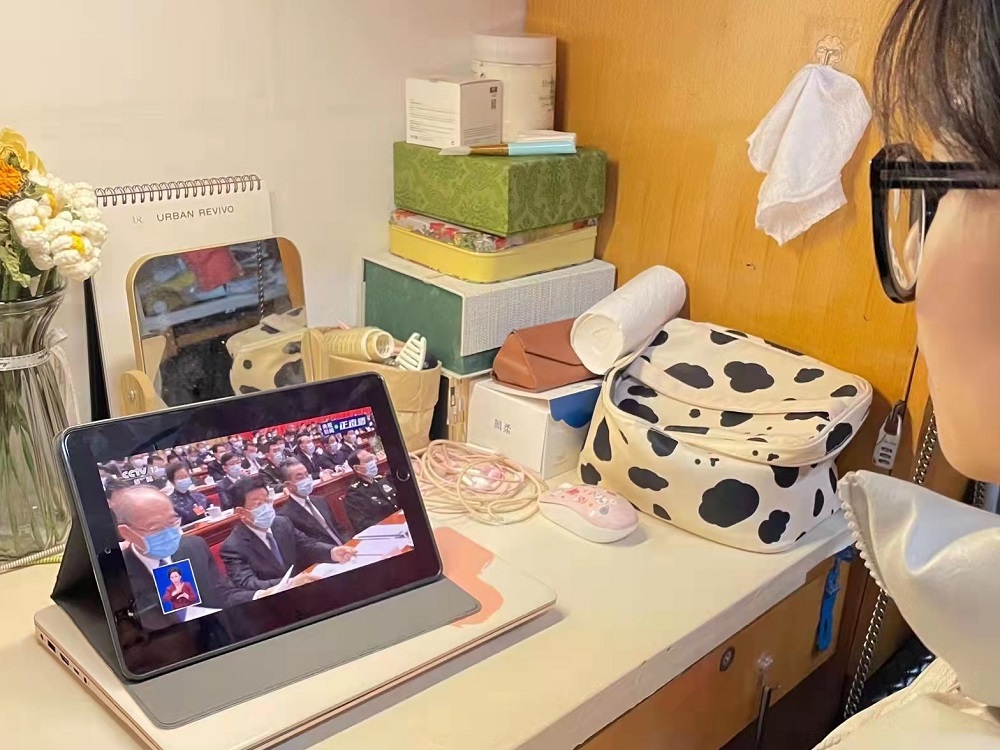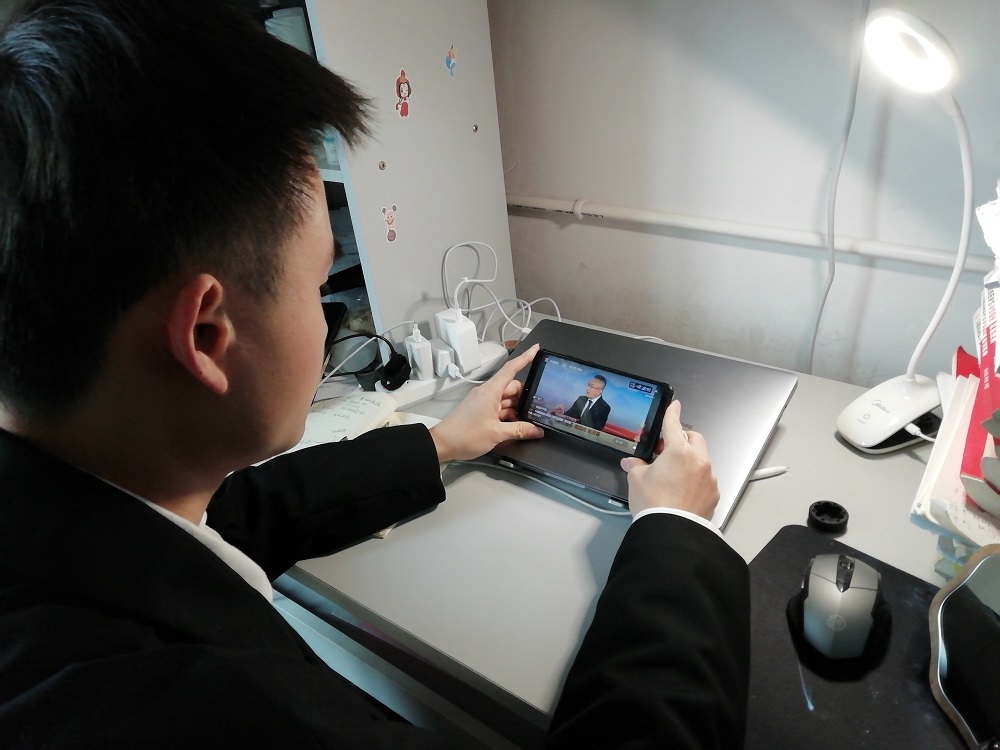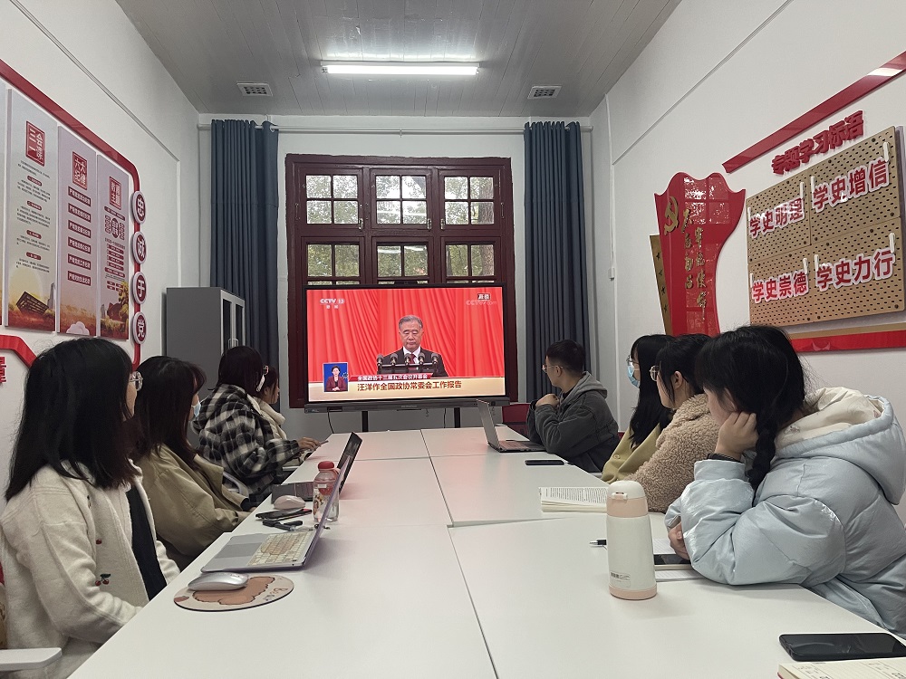 第一时间组织部分研究生于学院党员活动室集中观看全国“两会”开幕直播盛况,认真学习全国“两会”精神。其他研究生则通过电脑、手机等方式观看直播。