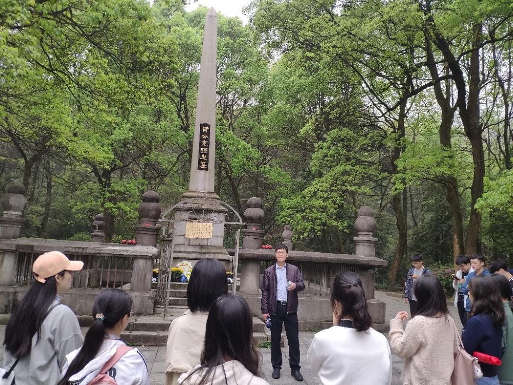 接着,两支部先后到达了蒋翊武墓、蔡锷墓与黄兴墓,分别由本科生党支部周辉宇同学、王琦珑同学与张肖肖同学介绍了三位革命先辈的光荣事迹。三位同学从人物生平出发,结合自己的体悟,在让老师、同学们加深对三位先辈认识的同时,表达了对其崇敬景仰之情。闫振振老师、李婷婷老师也对三位同学的讲解做出了点评。闫振振老师提到,作为麻豆瓜网