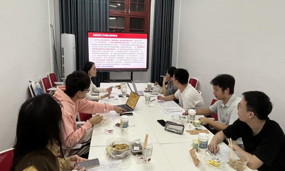会议第一部分,杨锦滔解读发展党员工作流程及材料填写规范,从发展党员的5个阶段25个步骤逐条细致讲解,进一步梳理党员发展流程,为今后党员档案材料填写规范化做理论积累。