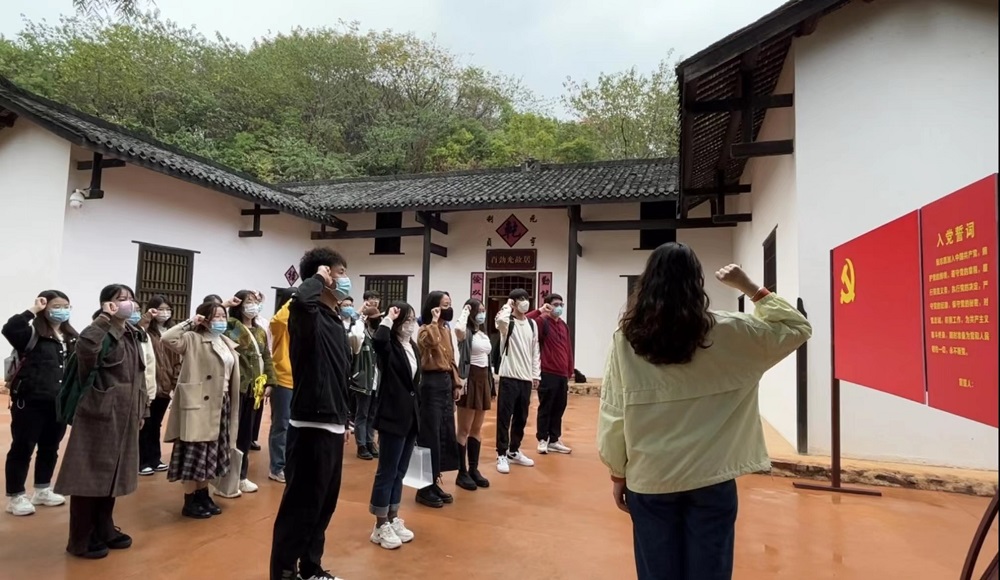 参观结束后,支部党员面对党旗重温入党誓词,铭记初心使命,认真回顾申请入党时的初心,回顾入党宣誓时的庄严承诺,回顾个人的成长历程和入党以来的追求与表现。同志们表示,在今后的学习和生活中将会跟随先辈们足迹,坚定“不忘初心、艰苦奋斗”的革命理想信念。
