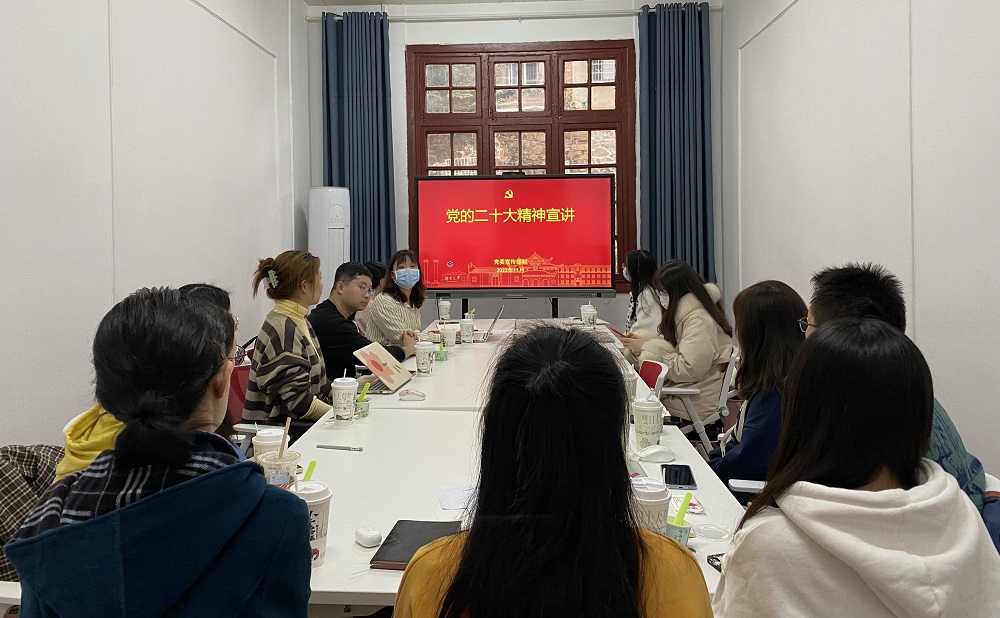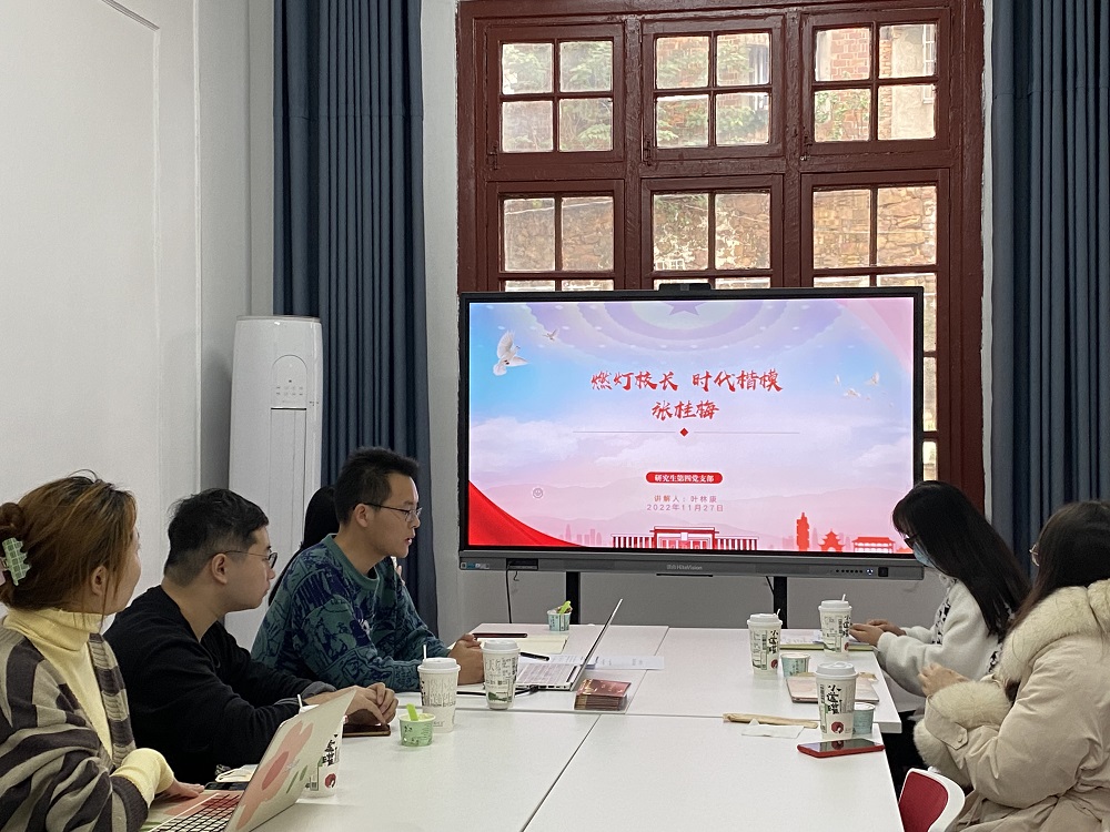 硕士研究生第四党支部在学院214室开展“学思践悟二十大,砥砺奋进新征程”主题活动,活动由支部书记罗欢主持。