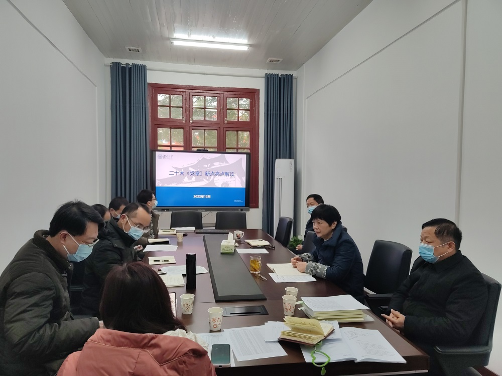 党委中心组开展本学期第11次理论学习。院党委书记付蓉芬主持学习,院党委副书记、纪委书记杜倩博领学党的二十大修改通过的新《党章》,院长李连友及学院中心组全体成员参加学习。