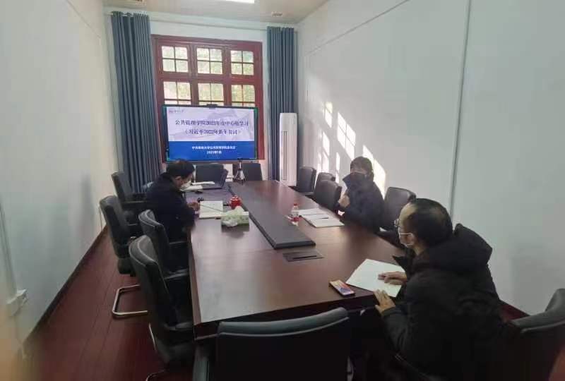 党委中心组开展今年第1次理论学习,学习采取线上线下相结合的方式进行。院党委书记付蓉芬主持学习,院长李连友及学院中心组全体成员参加学习。