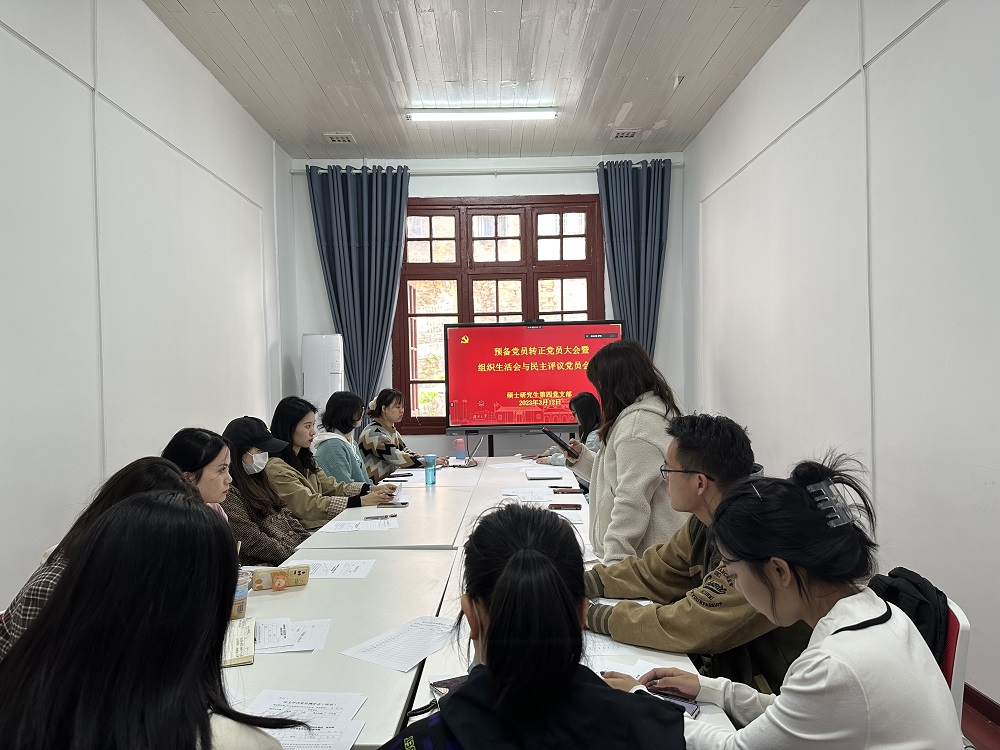 硕士研究生第四党支部在学院214室召开组织生活会和民主评议党员大会。会议由党支部书记罗欢主持,全体在校党员参会。