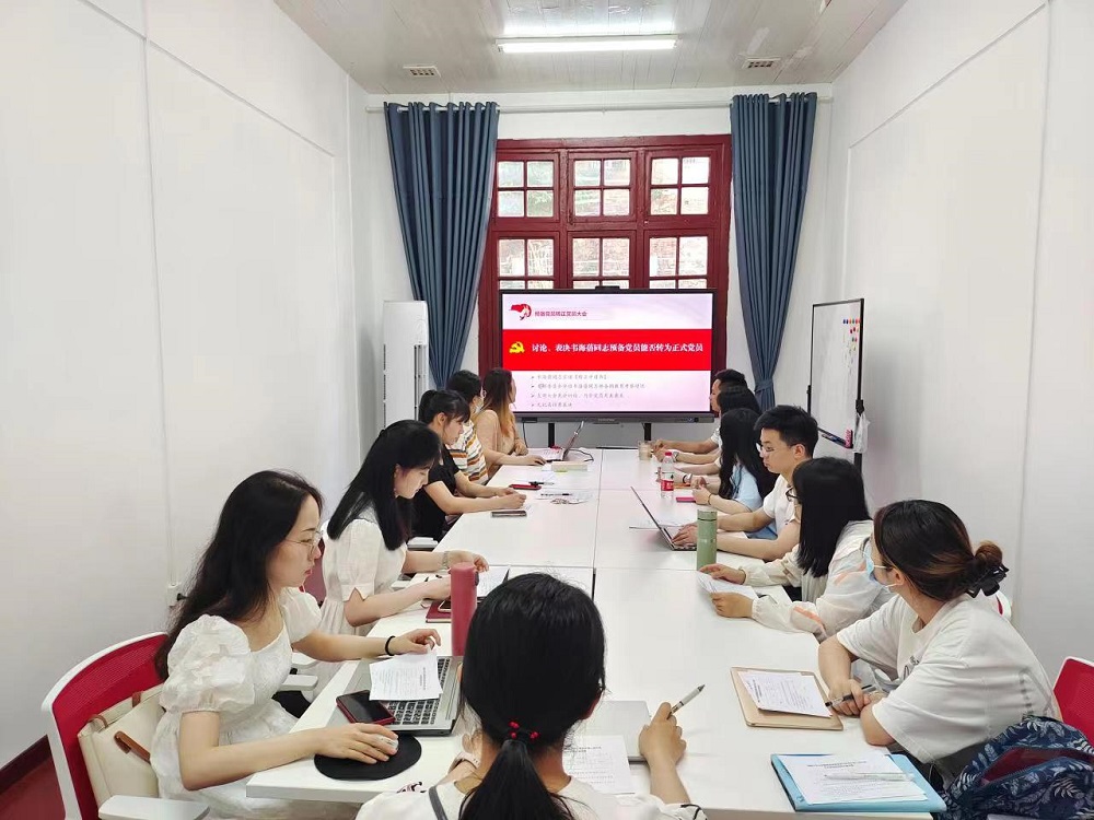 硕士研究生第二党支部在院楼214室召开预备党员转正党员大会暨新时代十年发展成就党课专题学习会。支部书记张佳乐主持会议,支部全体党员同志参加。