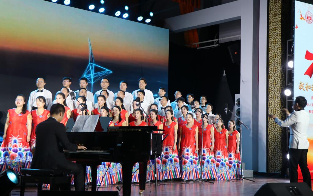 庆祝中华人民共和国成立70周年“我和我的祖国”教职工合唱比赛在大礼堂举行,各部门教职工用最嘹亮的歌声和最浓厚的爱国情怀,追忆中华民族从站起来到富起来、强起来的历史性飞跃,共同献礼新中国的七十华诞。