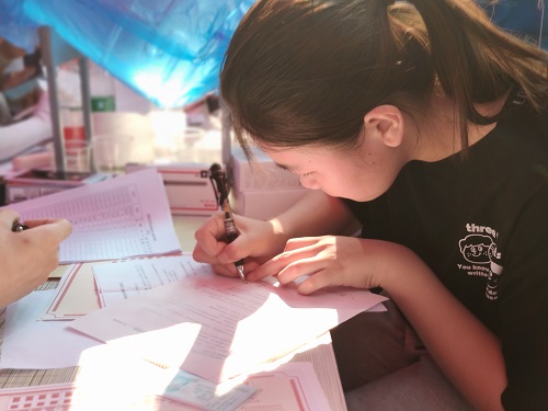 (志愿者们为新生办理报到手续,一丝不苟地登记每个前来报到的人员名单,并安排专人负责为新生拍照留念)