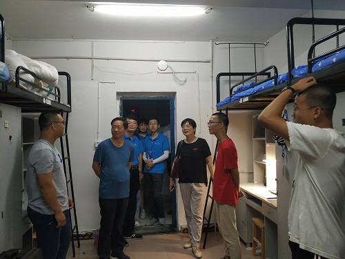 当晚,李连友院长、付蓉芬书记、杜倩博副书记来到天马学生公寓,走访新生寝室、慰问新生。“你来自什么地方?怎样来的?”“适不适应长沙的天气?”“空调温度不要开的太低啊。”院领导们进入寝室与每位新生进行亲切的交谈,鼓励同学搞好寝室团结,好好休息,以饱满的精神状态迎接军训生活。