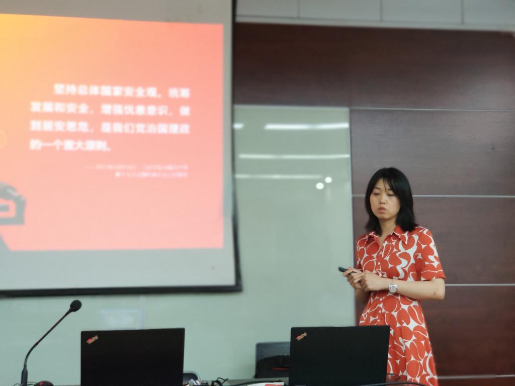 公共政策研究联合党支部书记程聪慧从国家安全的角度阐述了党治国理政的原则,她借助大禹治水、朝阳大妈等故事案例更深刻地解释国家安全、社会安全的重要性。指出党组织要始终坚持人民安全、政治安全、国家利益至上的有机统一。