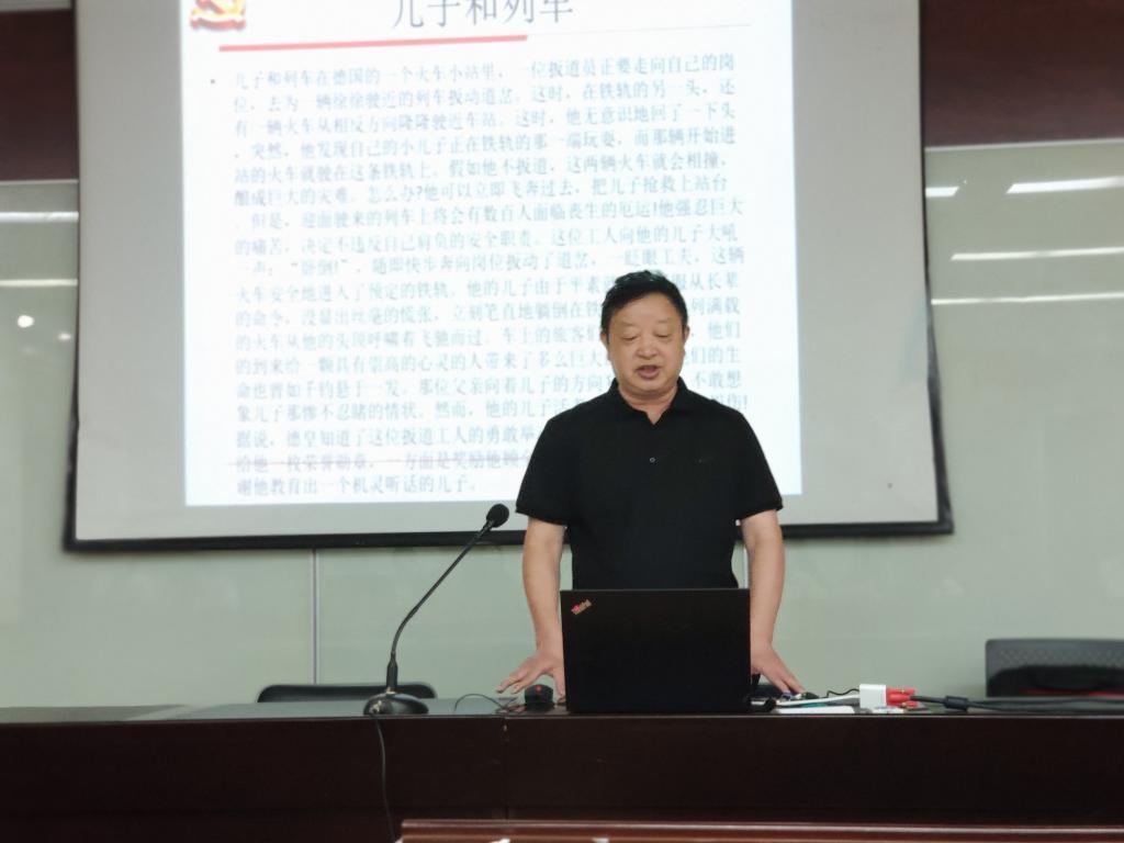 机关党支部书记李释然则是围绕党的十九大报告精神进行展示,李老师从我国社会主要矛盾的变化出发,充分运用生动的数字事例和贴近人民生活的物质与精神产品变化,深刻阐释了社会主要矛盾变化的内涵。