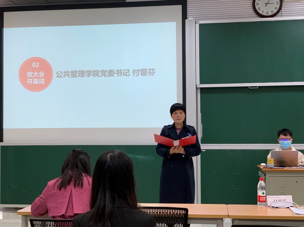 会议伊始,全体起立,奏唱国歌。付蓉芬致大会开幕词,首先对大会的成功召开表示热烈的祝贺,并对上一届研究生会的工作表示肯定。她提到当今时代是英雄辈出的时代,广大青年学子尤其是研究生骨干成员要牢记总书记嘱托,勇挑时代重任。借此机会,向全体同学及研究生会提出以下几点希望:希望同学们要坚定理想信念,以奋斗为荣,牢固树立强烈的责任感和担当精神;希望研会骨干要牢记服务为本的初心,切实维护同学们的发展权益,严于律己、履职尽责,用自己的实际行动回报老师与同学们给予的信任和支持;同时还希望研会要加强自身建设,创新工作方式,自觉接受同学们的监督和评议,在革新中不断前进!