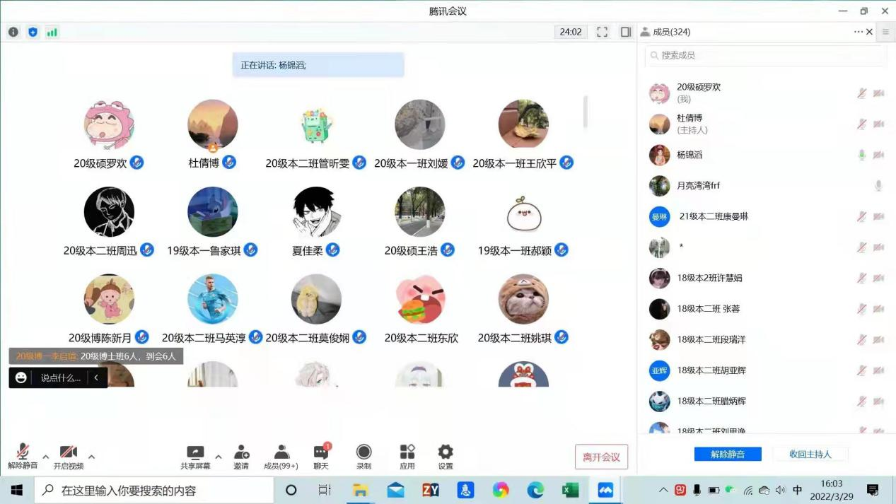 管控区内学生全员核酸检测不漏一人。杜老师与本科生各年级的每个寝室进行了线上交流,与居住在管控区的每一位本科同学通过视频会议的形式见面、畅聊,将关心与建议送到每一位同学身边。杜老师还专门针对暂未签约的2022届毕业生、面临毕业去向选择问题的2023届毕业生,进行了两次线上会议,就同学们关心的问题进行讲解,帮助他们消解各种疑惑。杜老师在管控后的第一时间组建并加入了班长群、寝室长群、利益诉求表达群等工作群,全面及时掌握同学们在管控区内的各种情况,迅速传达学校和学院的各种管理信息,确保了麻豆瓜网
