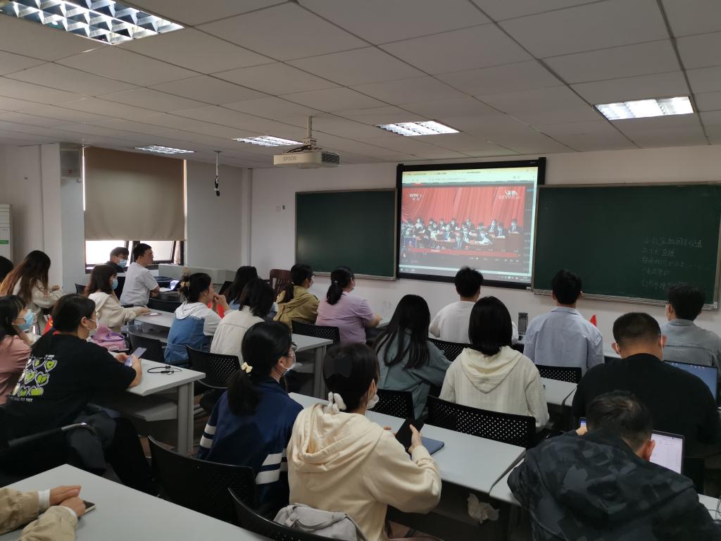 党委书记付蓉芬、院长李连友、党委副书记、纪委书记杜倩博、研究生辅导员杨锦滔与本科生实习辅导员胡春晖分别在院楼221教室、综合楼108、507、509教室等各会场,同学院师生集中收看开幕会盛况,认真聆听习近平总书记所作的报告。其他院领导和师生以各种不同形式收看收听。
