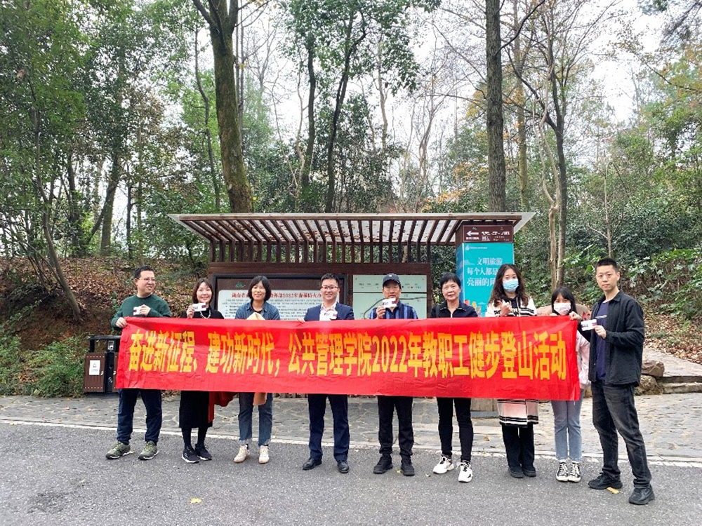 教职工个个精神抖擞从学院楼前出发,沿着既定路线向着岳麓山顶前行。一路上,大家相互间交流感情,尽情抒怀,欢声笑语回荡在山风中,工作中的紧张和压力得到了尽情的释放。整个徒步过程中充满了温馨、愉快,大家相互帮助,相互鼓励,充分发扬了团结拼搏、不畏艰险的优良作风,共同完成了活动。