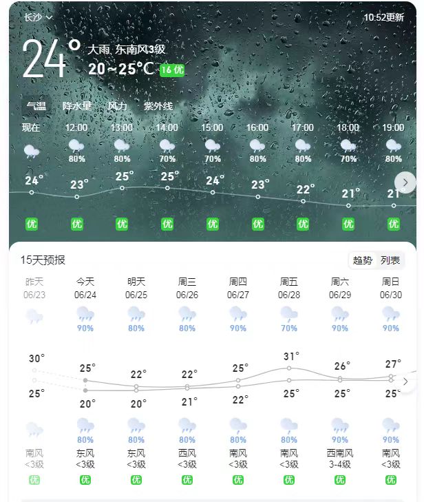 这段时间,强对流天气将成为“常客”,未来一段时间依旧降雨频繁,自6月20日20:00至21日20:00,湖南省暴雨蓝色预警、地质灾害气象风险预警、山洪灾害风险预警三预警齐发(24日市气象台升级暴雨预警信号为红色),需警惕降雨叠加以及持续降雨或局地强降雨可能引发的山洪、地质灾害、中小河流洪水、城乡积涝等灾害。