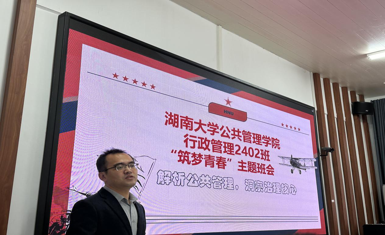 行政管理2402班“解析公共管理,洞察治理核心”主题班会成功举行。副校长汪卫斌、学工部副部长邓昌富、该班主任赵岩出席,杨柳与周依格同学主持。