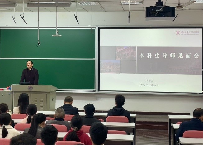 杨昌济曾说:自闭桃园称太古,欲栽大木柱长天。希望各位2024级本科生同学在导师的引领下,在接下来四年的大学生活中学习本领,施展才华,弘扬公共精神,立志做对国家和社会有贡献的人才。
