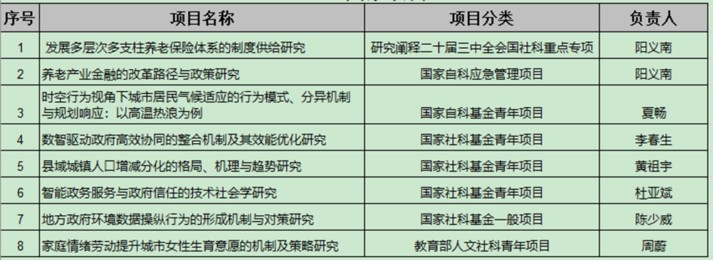 学院成功获得国家及教育部项目立项 8项。其中,阳义南老师获批研究阐释二十届三中全会国家社科重点专项项目和国家自然科学基金专项资助项目共计2项。此外,陈少威、黄祖宇、杜亚斌、李春生等多位老师表现出色,分别获批国家社科基金一般项目和青年项目共4项。夏畅老师获得国家自然科学基金青年项目立项1项;周蔚则荣获教育部人文社会科学青年项目立项。