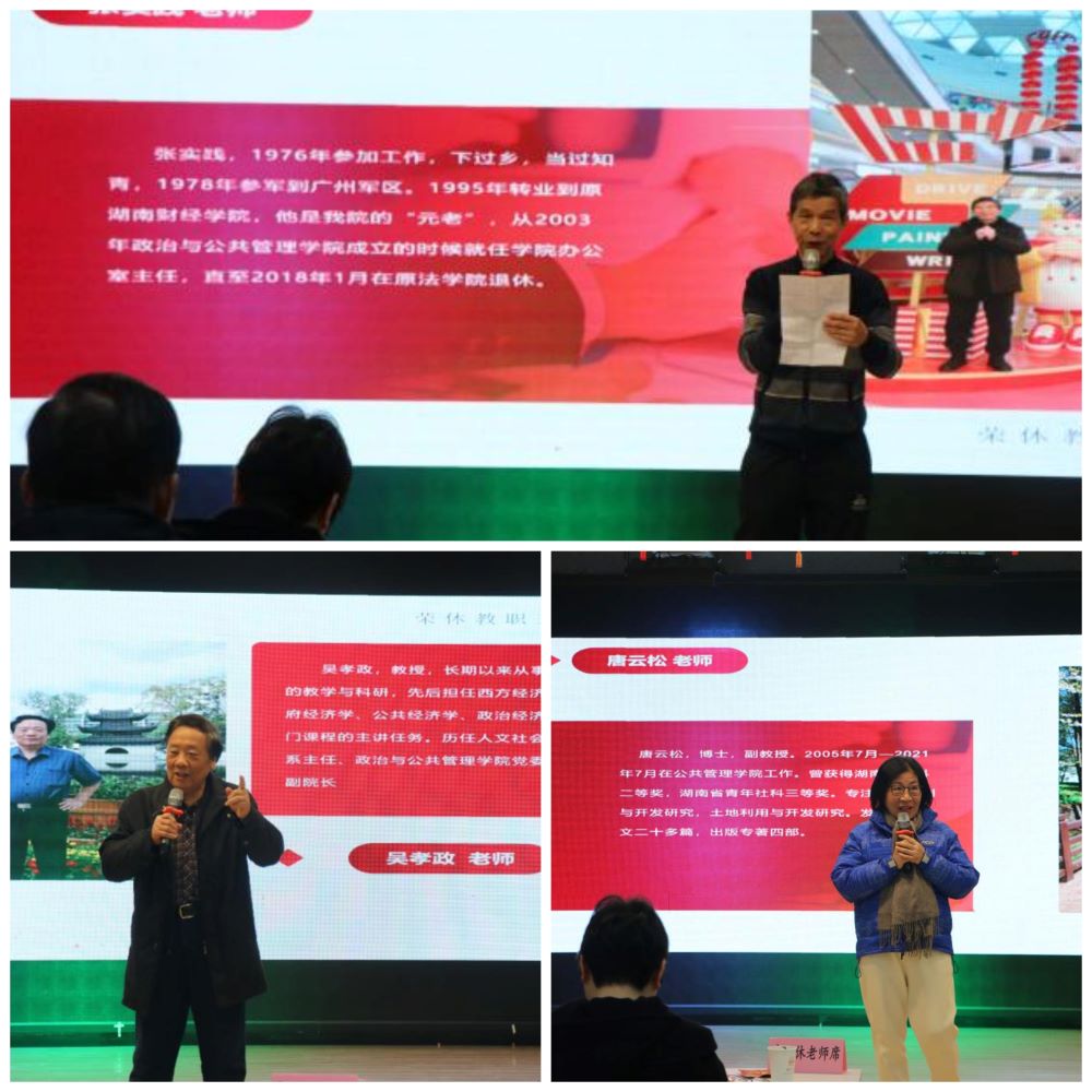 程聪慧、李春生两位老师主持,学院退休教师、全体教职工及学生代表参加。