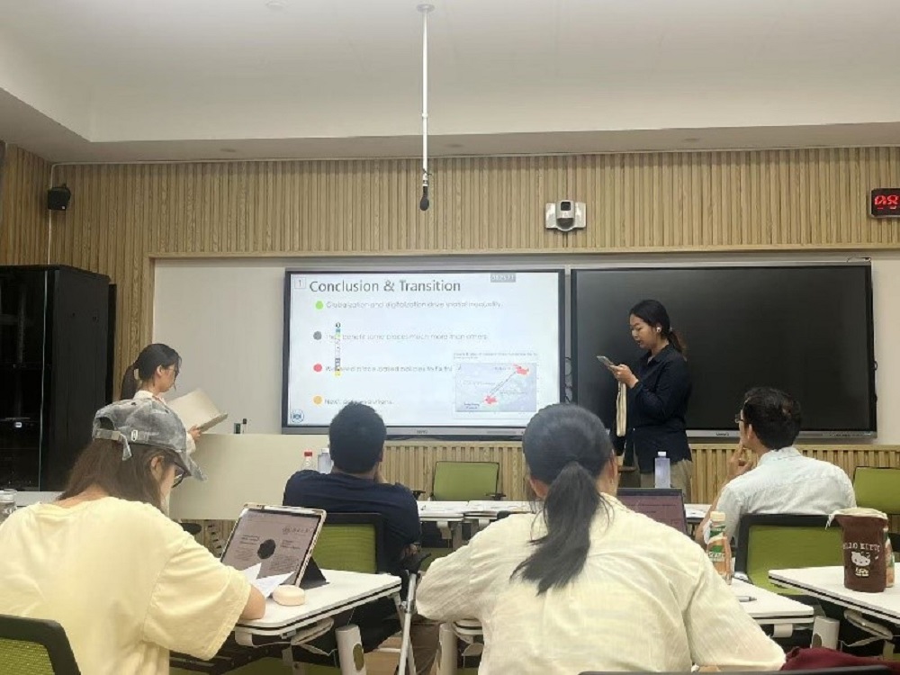 魏智武博士作为剑桥大学区域经济与政策领域的专家,为课程带来了国际前沿视角。课程推荐的阅读材料涵盖OECD最新政策报告及多国学者研究成果,为学生提供了丰富的理论资源。参与学生杨歆锐说道:“通过这门课程,我深刻体会交流的重要性。课程进行中让我学会了尊重多元视角,也提升了我的英语表达能力。老师引入的全球案例和前沿理论,拓宽了我的知识边界,让我更关注世界性议题。同时,小组合作和展示也锻炼了我的团队协作与批判性思维,更锻炼了我如何在短时期内完成一项任务量较大的工作。这门课不仅让我收获了专业知识,更培养了我作为‘全球公民’的包容心态。未来,我将以更开放的姿态拥抱文化差异,在国际化环境中持续成长。”参与学生贺泽楷表示:“本课属于国际课程,邀请到了剑桥大学的魏老师来给我们进行讲解。学习国际课程的经历充满挑战与收获。它打破了传统教育以老师所讲为基础,学生被动接受的固定模式,以多次的课堂互动来促进学生的思考与理解,以探究式学习培养批判性思维,多元文化碰撞拓宽视野,并且以英文的方式来尽可能的给我们还原国外的授课方式。课程中案例的研究、小组合作,不仅提升了我的综合能力,更让我明白,知识的获取不应局限于书本,而在于探索世界的无限可能。”