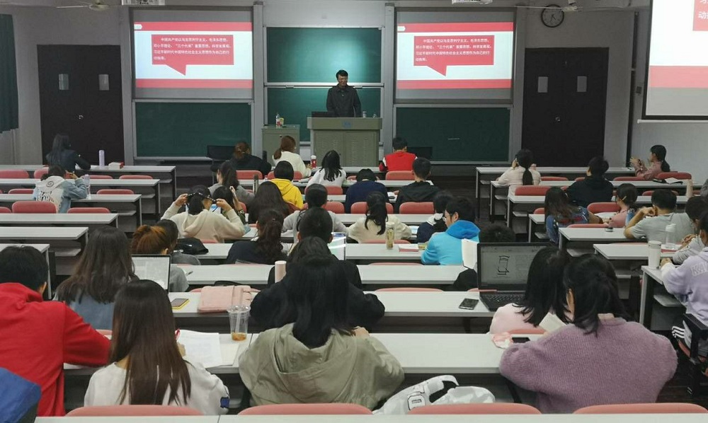 杜倩博老师以《中国共产党的指导思想》为题,首先阐释了中国共产党以马克思列宁主义、毛泽东思想、邓小平理论、“三个代表”重要思想、科学发展观、习近平新时代中国特色社会主义思想作为自己的行动指南,并分阶段为我们介绍了马克思主义在中国不断发展的历史进程。杜老师讲道,“在习近平新时代中国特色社会主义思想指导下,中国共产党领导全国各族人民统揽伟大斗争、伟大工程、伟大事业、伟大梦想,推动中国特色社会主义进入了新时代”,并鼓励同学们认真系统地学习习近平新时代中国特色社会主义思想。