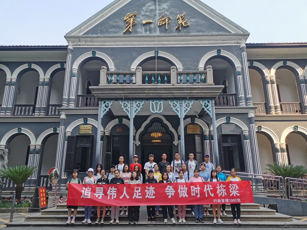 为热烈庆祝中华人民共和国成立70周年,追寻革命先辈伟人足迹,点燃爱国爱党热情,9月29日下午,行政管理1902班在毛泽东与第一师范纪念馆开展了“爱国奋斗正当时,建功立业新时代”系列活动之实地参观学习。本次活动由团支书赵坤同学组织带队,全班同学参加活动。