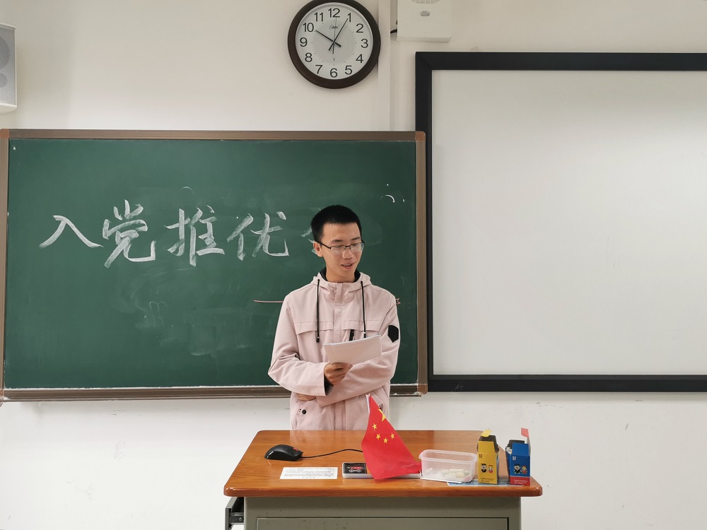 上午十点,在入党推优大会正式开始之前,团支书赵坤首先宣读推优条件。在同学们了解入党推优需要的条件和此次入党推优的规则后,大会正式开始。在团支书的组织下,夏仁辉、李欣玉、王玥璠、黄建丽等8名团员积极有序地参与了本次推优竞选。竞选团员说明自己的入党动机,介绍阐述对党的基本认识,表达了对于党的敬意和入党的决心。同学们还简单讲述了取得的成绩和自身存在的不足,对自我做出全面总结,并且向党组织同学们做出承诺,今后会努力改进不足,在学习和工作上严格要求自我,带领同学们做好党组织的助手和后备军。