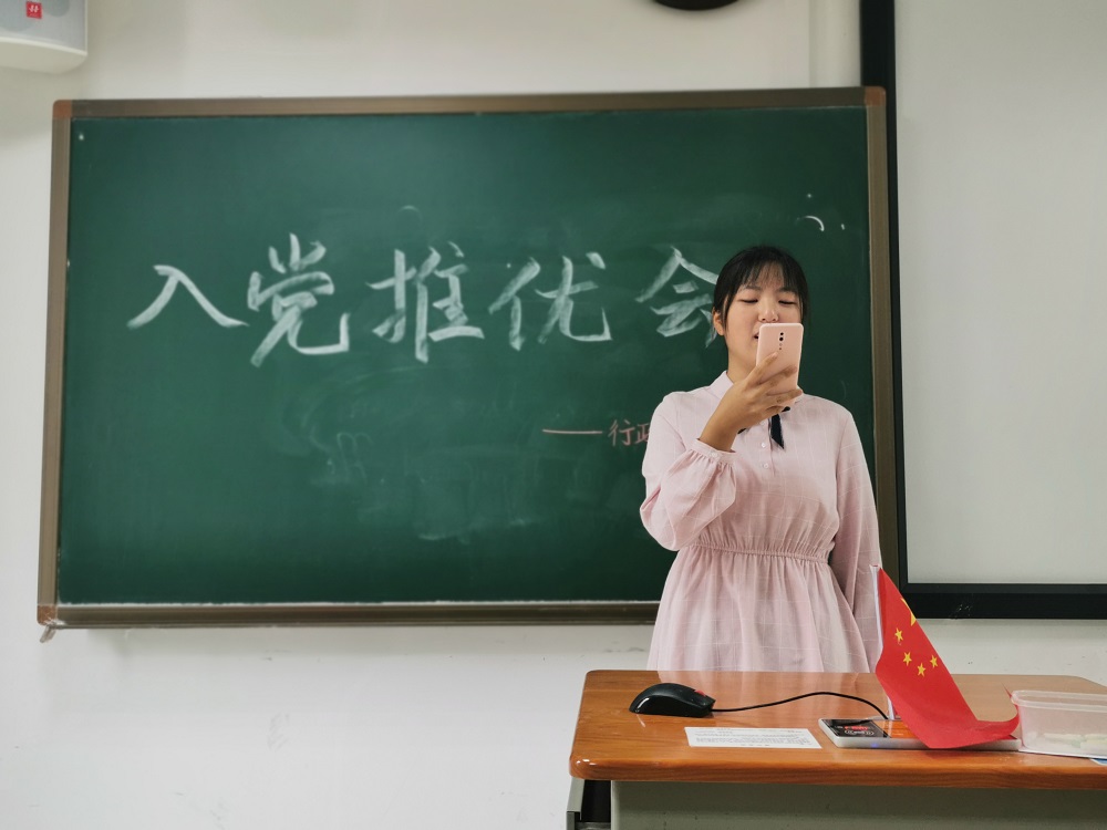 为将青年中的优秀分子推荐给党组织,积极向党组织靠拢,10月8日,行政管理1902团支部在研究生楼A202召开入党推优会。会议由团支书赵坤同学主持,分团委组织部干事杨滴全程监督,行政管理1902全体同学参加会议。