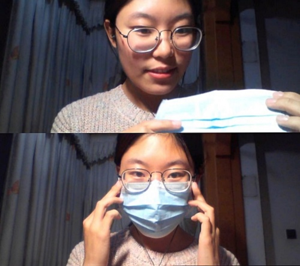 随后主持人又为同学们分享了疫情出现的原因,并呼吁同学们不要食用野生动物,食用全熟肉类。接下来刘昱呈同学还教授大家预防传染病毒的方式,告诉大家出门戴口罩、避免去人群聚集处、注意通风和消毒、多喝水拒绝野味等,并通过视频直播的方式详细介绍了正确的洗手方式以及医用口罩佩戴方法。