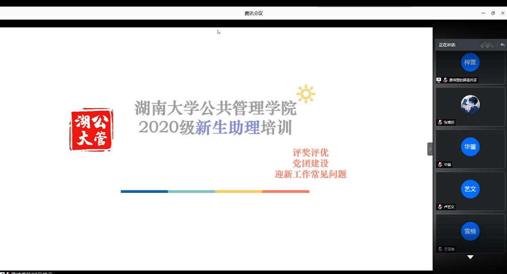 迎新团队通过腾讯会议开展了第五次新生助理培训。此次培训由辅导员闫振振老师进行指导,迎新总负责费梓萱同学主持。全体新生助理参加培训。