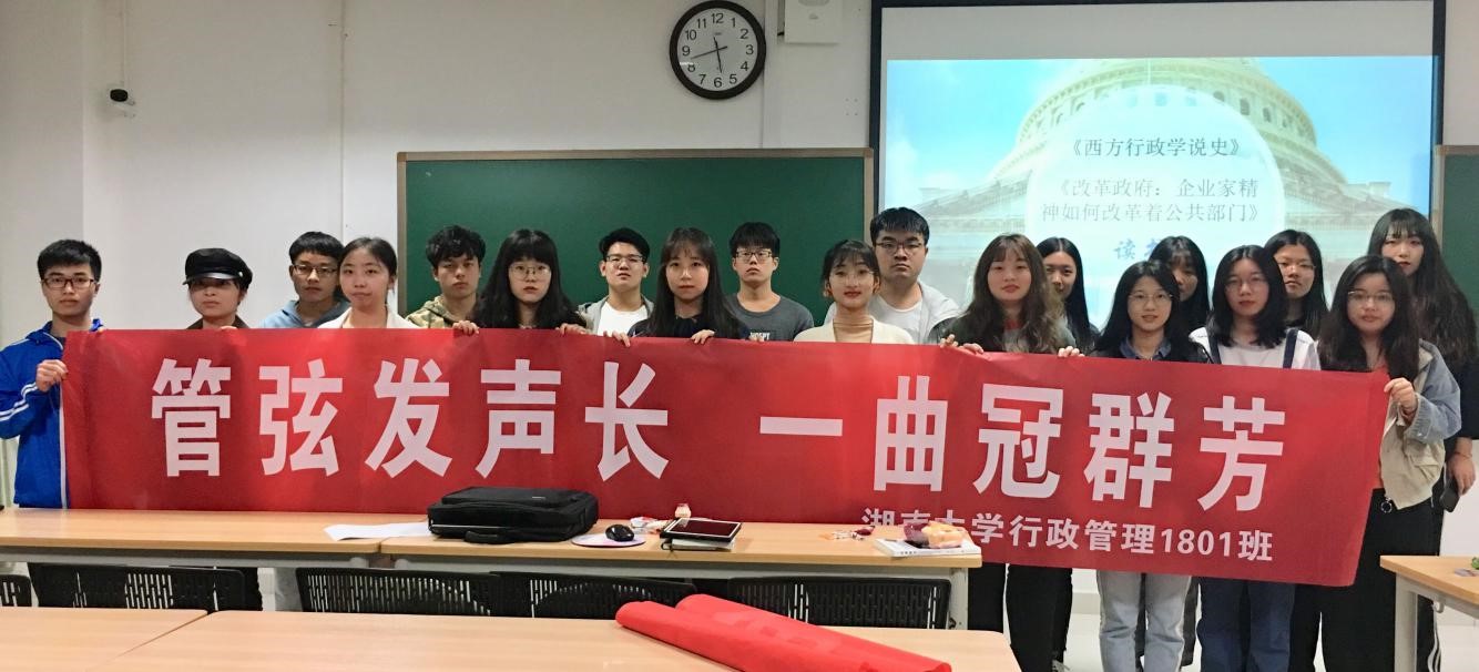 教授,硕士生导师李金龙老师出席并担任评议嘉宾,行管1801、1802班班长王琦珑、卢艺文联合主持,由 2018级本科生分享阅读了由丁煌所著的《西方行政学说史》以及戴维·奥斯本和特德·盖布勒合著的《改革政府》后的感悟与思考。大家围坐在一起,认真倾听,自由发言,平等交流,一同感受知识的魅力和分享的乐趣。