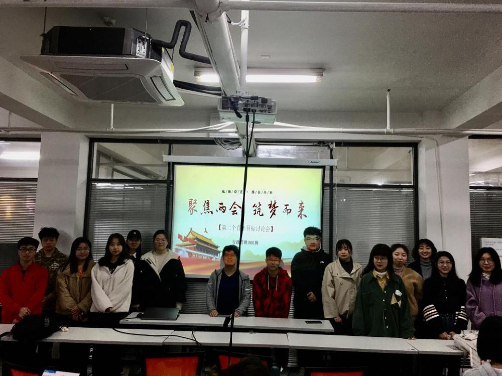 为庆祝中国共产党成立100周年,深入贯彻落实习近平总书记关于做好新时代青年价值引领工作的重要论述,在深化改革创新中更好构建宣传思想工作大格局,4月11日,行管1801班于图书馆研讨空间106教室召开“聚焦两会,筑梦而来”主题讨论活动。本次青年使命责任大讨论活动由团支书陈月组织,行管1801班全体同学参与。
