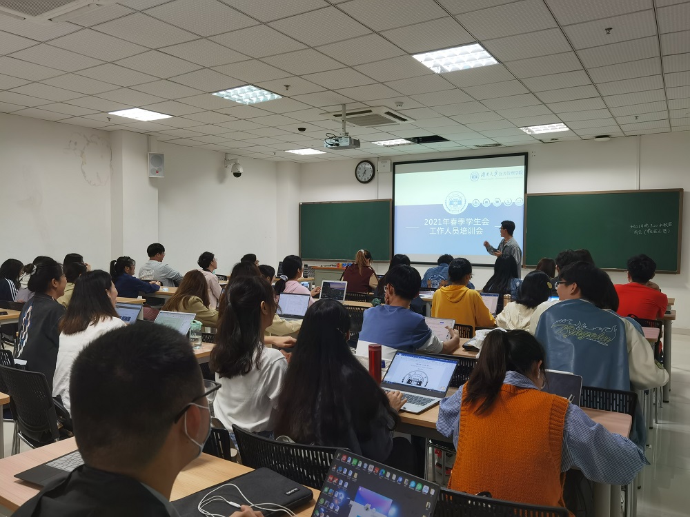 于4月21日晚19:00在研究生楼C102教室召开2021学年春季学期团委、学生会工作人员培训会。本次会议由学生会综合服务部李建城主持,团委、学生会全体人员参会,团委书记闫振振老师出席本次会议。
