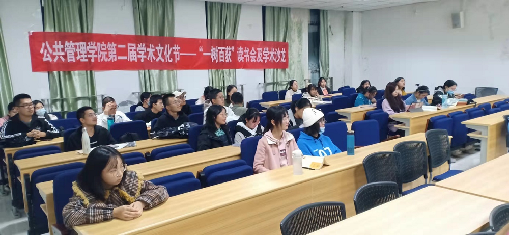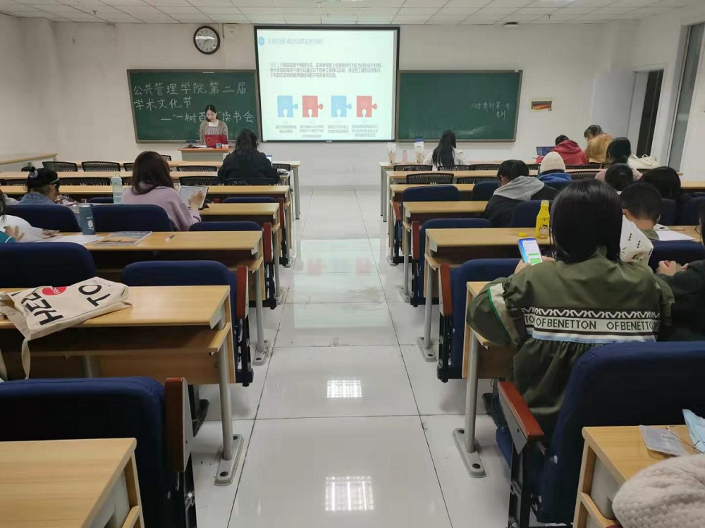 在研楼C201教室举行了“一树百获’’读书分享会活动。本次活动由行政管理2021级全体本科生参加。