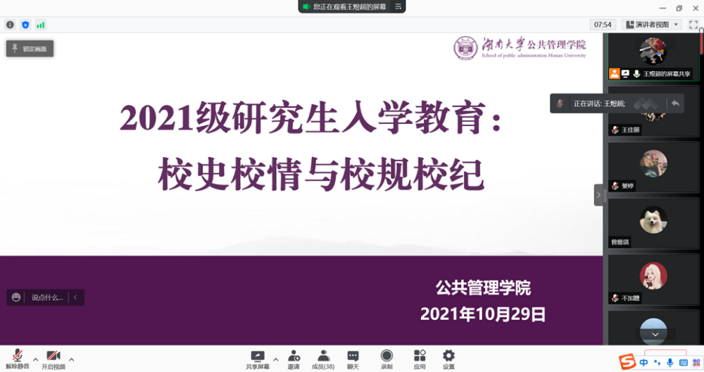 2021级研究生新生入学教育之“校史校情及校纪校规”学习活动通过腾讯会议线上开展。本次学习活动由麻豆瓜网