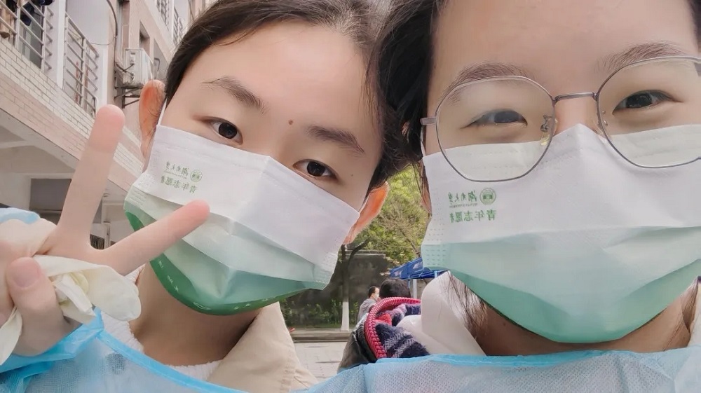 加入了“青年突击队”的杨斐然同学,在封校前一天的全员核酸检测中维持场内秩序6.4小时。封校第一天,她又参加了志愿服务,仍旧负责秩序维护,从下午三点一直工作到晚上十点多才回到寝室。由于当时刚封寝,场面比较混乱,手头上也没有扩音器和小喇叭,所以她便扯着嗓子喊:“请大家保持一米间距”“请大家打开健康码”......她回忆道,当时有一瞬间很崩溃,但在其他志愿者同学与叔叔阿姨们的相互帮助与鼓励下,不安的情绪便渐渐消失了,工作还是顺利进行着。在完成了维持秩序的工作后,恰是晚饭饭点。但听说园区外的一个研究生寝室楼栋人手不够,她果断报名赶赴,工作到十点钟依旧没吃上晚饭。