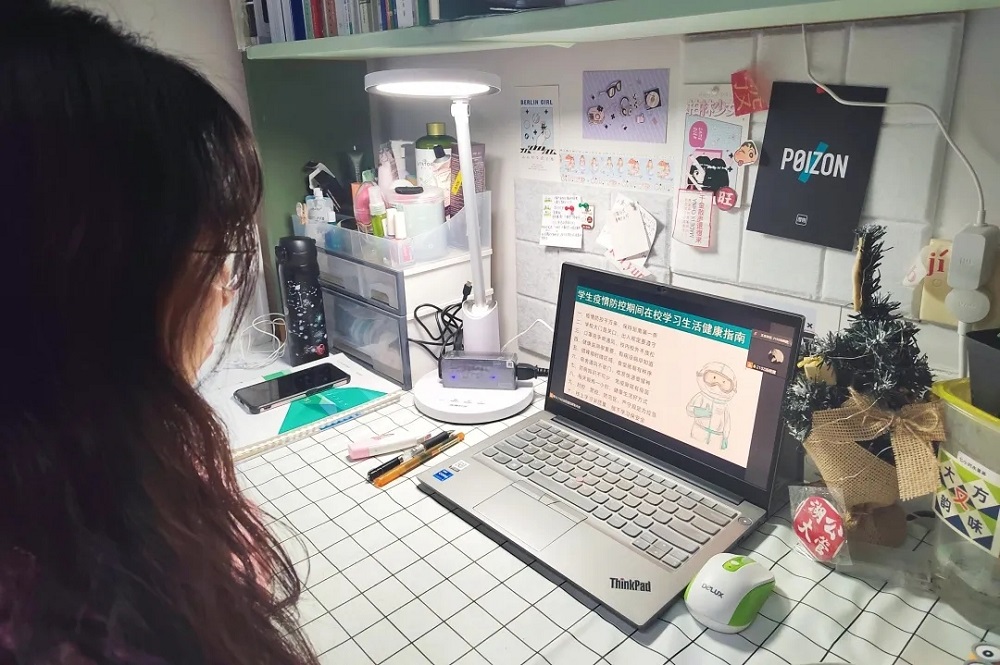 认真上网课。