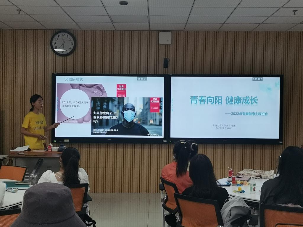 9月30日,行政管理2201班开展了“青春向阳,健康成长”青春健康主题班会,同伴教育同盟宣传负责人为同学们宣传了艾滋病与避孕的相关知识。