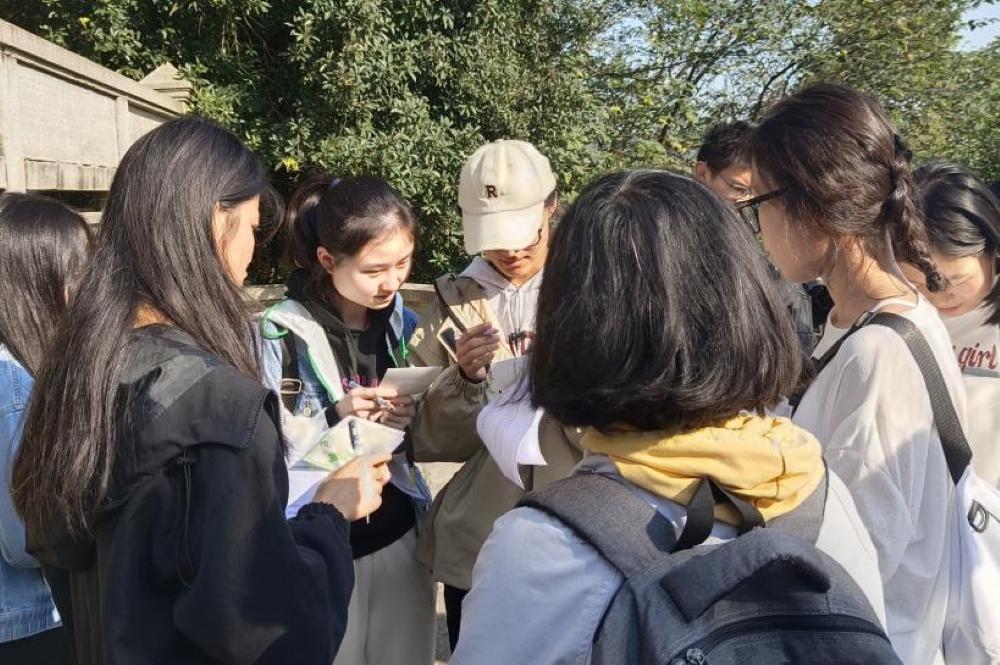 比赛正式开始,各参赛队员力争上游,跑步前往岳麓书院,在提示点以小组为单位进行知识闯关,以获取第一环节的提示信息。随后,各参赛队员开启了本次活动的第一个环节——在岳麓书院中寻找装有登山路线图及打卡图的信封。经过大胆探索与仔细寻找,各小队陆续找到信封,按登山路线分别前往各自的打卡点进行答题与游戏闯关。