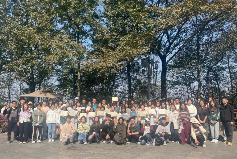 历时约两个小时,全部参赛队伍完成了打卡任务,抵达终点站观光长廊进行成绩录入。经过活动评算后,由主持人王麒隆同学进行排名公布,各参赛队伍取得了自己心仪的成绩,队员们为自己付出的努力欢声鼓掌。随后,王同学主持开展了“问麓九舍”团学训练营的结营仪式,总结了为期一个月的团学训练营学习成果与收获心得。最后,由本次活动负责人为各参赛队伍颁发奖品,并组织全体成员进行合影留念。