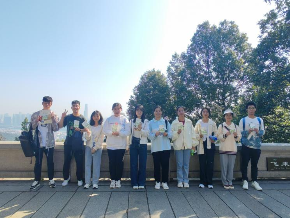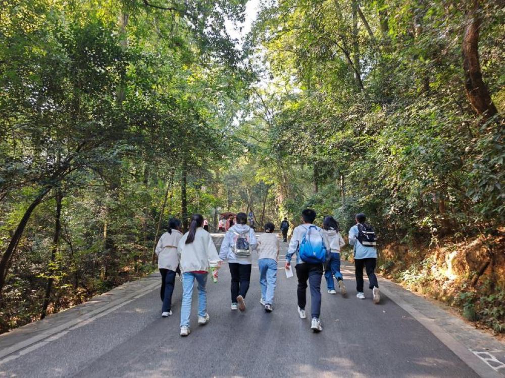 一步一步勇攀高,到达打卡点处后,志愿者们向各参赛小组宣读游戏规则与问答题题目,并引导参赛者们进行闯关;参赛队员们各自开动脑筋回答问题、齐心协力完成趣味游戏;在登山途中,各参赛队伍中的成员相互帮助,中途休息时欢笑言谈,也有细心的同学主动关心照顾体力不支的同伴。金秋十月,阳光洒下,岳麓山上秋景正好,各参赛队员在登山途中留下了美好印记。