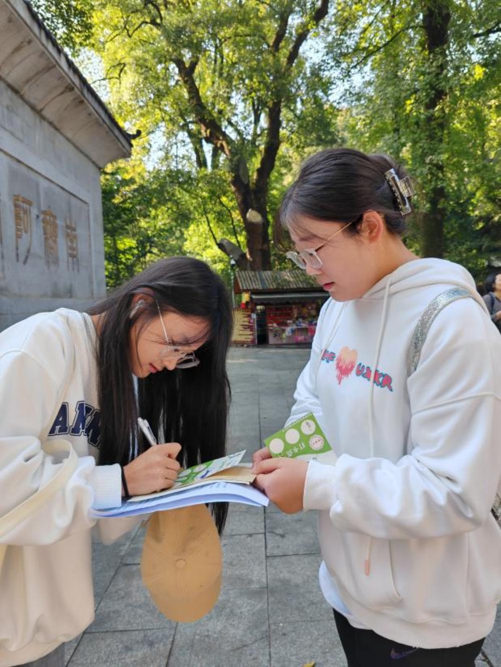 (志愿者为完成游戏的队员签字打卡)
