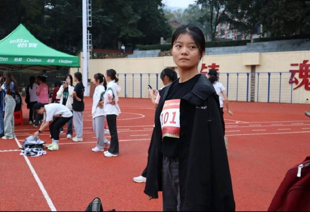 李雅静同学在100米项目的跑道上奋力奔跑,尽力向终点冲刺;符代莲同学则代表麻豆瓜网