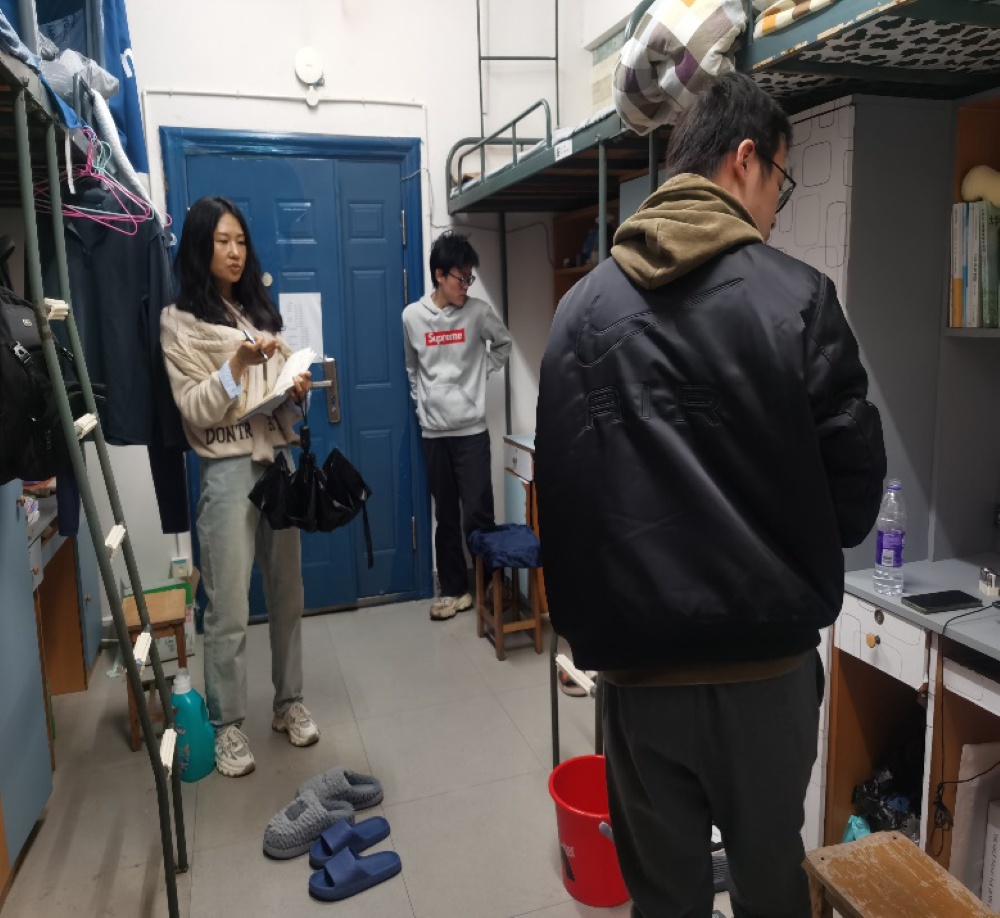 为进一步提高广大学生安全意识和自防自救能力,坚决防范和遏制火灾事故发生,根据学校有关通知要求,麻豆瓜网 党委副书记杜倩博、辅导员胡春晖、班主任毛劲歌与伍雪骏老师于3月17日晚带队开展学生宿舍安全检查,针对寝室消防安全、出行安全、防范电信诈骗、食品安全等向同学们进行宣传教育,提示同学们提高警惕,时刻绷紧安全弦。