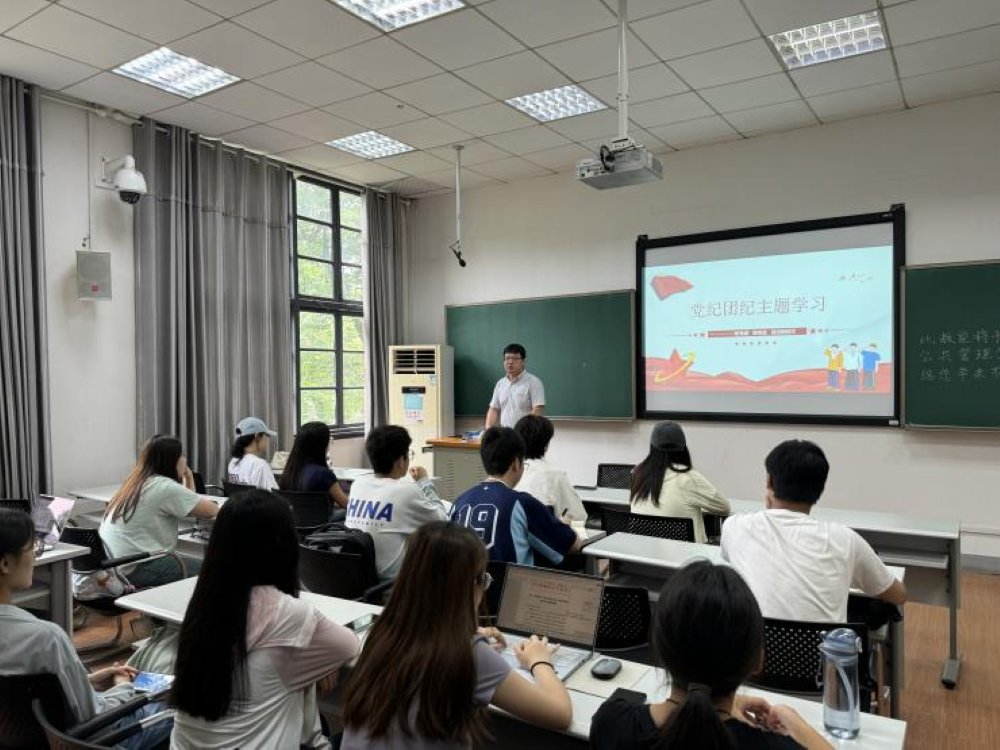 “青年是时代发展的先锋力量,是推动社会进步的生力军。”胡老师带领同学们学习了团中央书记处第一书记阿东同志的重要讲话,引导大家增进对“两个确立”的政治认同、思想认同、理论认同、情感认同。在进行党纪、团纪学习时,胡老师指出,学生干部更应当树立高度的纪律意识,强化自己的党纪、团纪观念,始终坚守纪律底线,不触碰红线,以实际行动维护党的纯洁性和团组织的凝聚力。