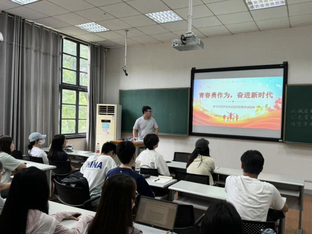 会议伊始,胡老师带领同学们对习近平五四重要讲话精神进行学习。在领学总书记讲话内容后,同学们进一步交流与体悟其中的精神内涵。胡老师谈到,作为新时代的青年学子,同学们不仅要铭记习近平总书记的殷切嘱托,更要将其转化为实际行动的动力源泉,扛起历史之责,不负时代之望,以实际行动书写青春华章。
