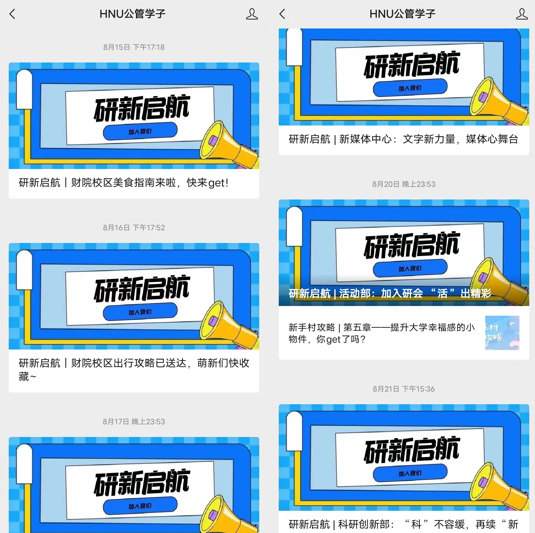 为了迎接新生,学院在暑假期间通过“HNU公管学子”微信公众号,推出了“研新启航”栏目,发布麻豆瓜网概况