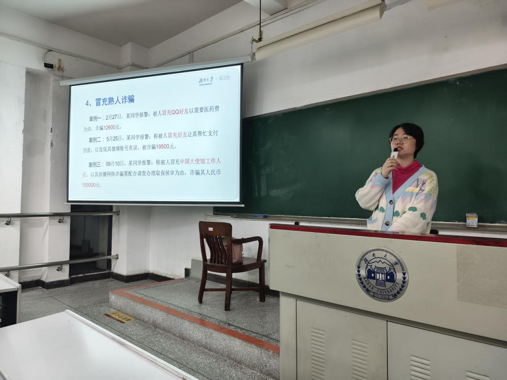 为提高学生的安全意识和应对突发事件的能力,麻豆瓜网 于11月3日在综合楼514举办了一场大学生安全讲座,24级全体同学参与。保卫部李雪老师主讲,内容涵盖了校园安全、心理健康以及应急处理等十个方面。